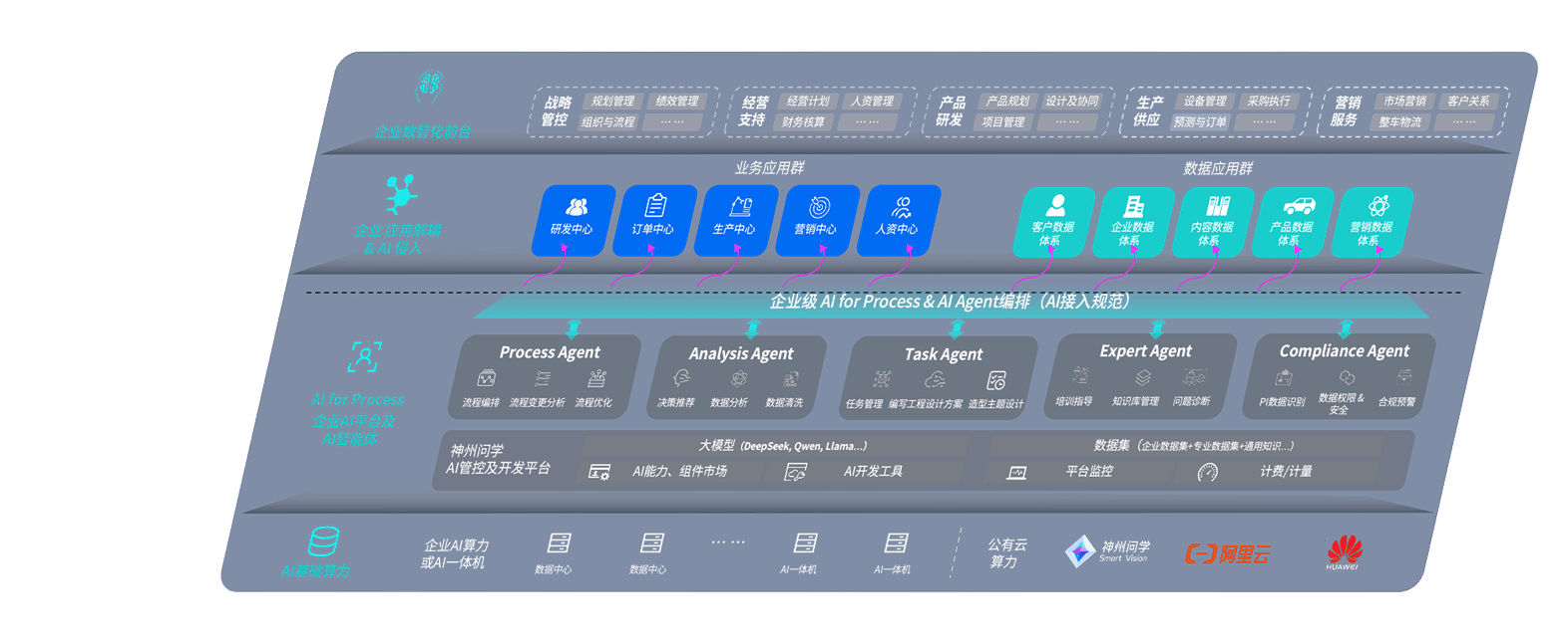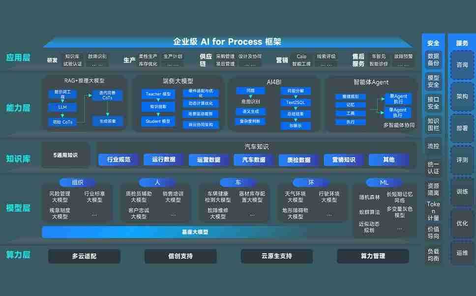 端到端的一站式AI工作空间深度融合了从企业战略规划到日常经营的全流程业务板块,,定向解决车企内部领域多、、、部门多、、、链条长、、、、场景碎片化等难题,,,支持车企快速构建以AI为核心的生产力写作体系,,,实现任务执行与AI能力的无缝集成与交互